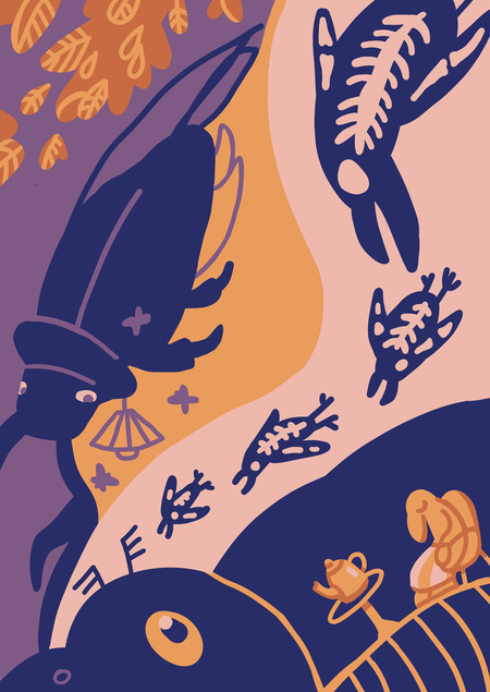Серия иллюстраций для ковров про сосуществование больших и маленьких существ и события, происходящие с ними.