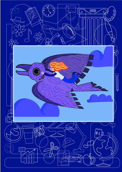 Серия иллюстраций о Вышке, реализованных в такой продукции, как тарелка, платок-косынка и плакат. Иллюстрации расскажут о хаосе учебы, в котором бывает сложно разобраться, но целеустремленность и жажда знаний, олицетворённые в символе вышки — вороне, всегда выступают главными помощниками на пути получения необходимых для жизни знаний и навыков.