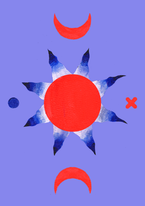 Главной задачей было создать книжку-картинку. В качестве фундамента я решил взять отрывок ксилографической статьи про астрономическое явление над Нюрнбергом 1561 года. Содержание этой статьи основано на сообщениях очевидцев. В своей книге я решил повысить контраст цветовой палитры, углубиться в абстракцию, тем самым сконцентрировав внимание читателя на красоте астрономического явления. Иллюстрации нарисованы акрилом