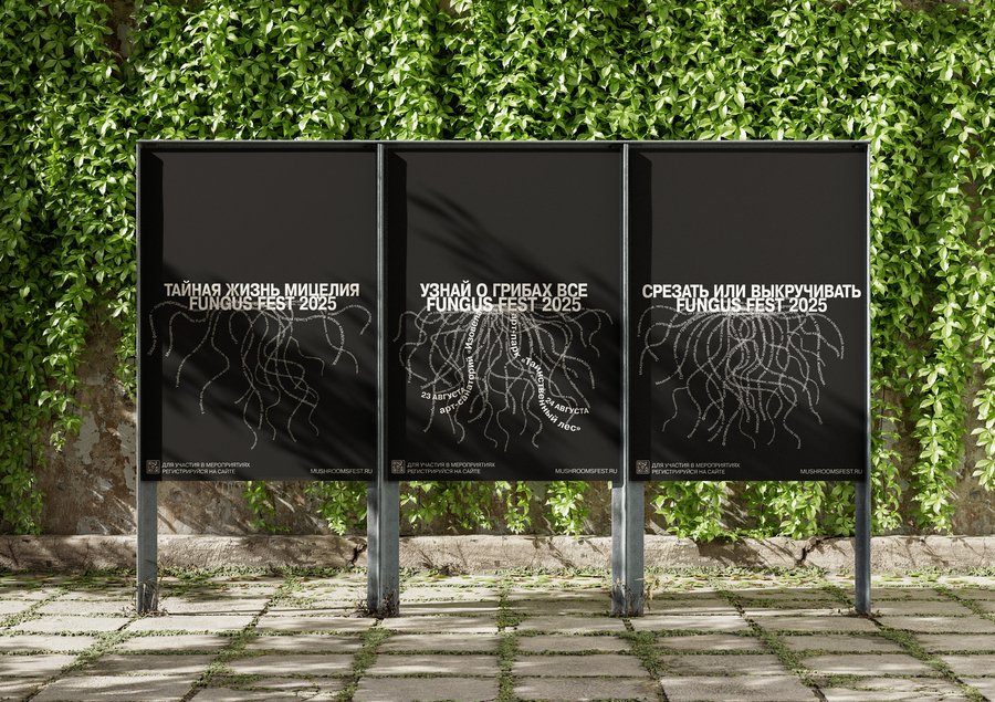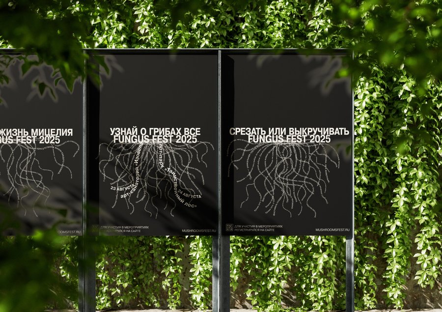 The metaphorus of the project was mushroom, a living organism whose threads connect space. It formed the basis of the festival’s visual style, emphasizing its scientific nature and, at the same time, its openness and accessibility to a wide audience.