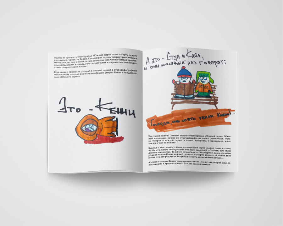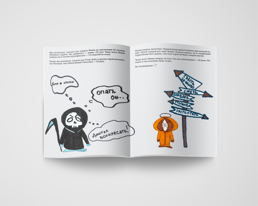 Раз создателем мультсериала можно хулиганить, ломая законы природы, то и мы немного отойдем от правил, перекладывая инфографику в зин