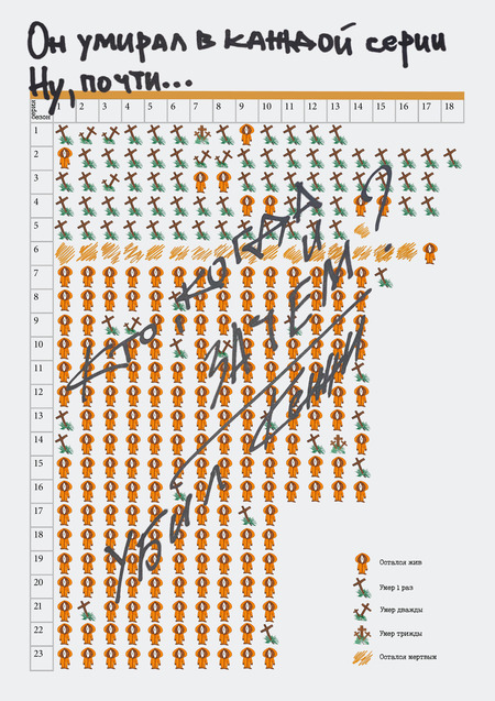 Есть нюанс: Кенни не умирал в каждой серии! В этой инфографике мы покажем, сколько раз и каким образом умирал Кенни в каждом сезоне «Южного парка».