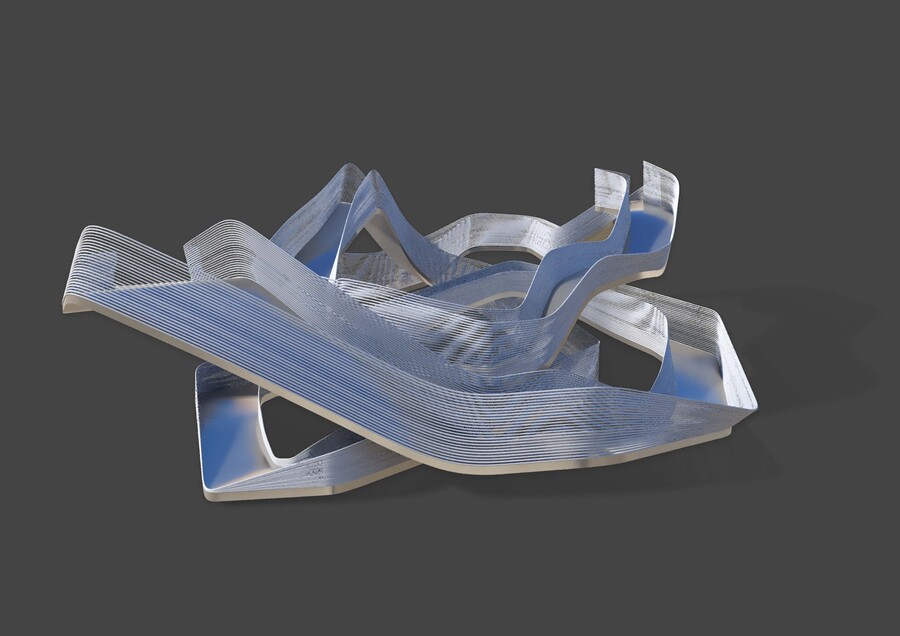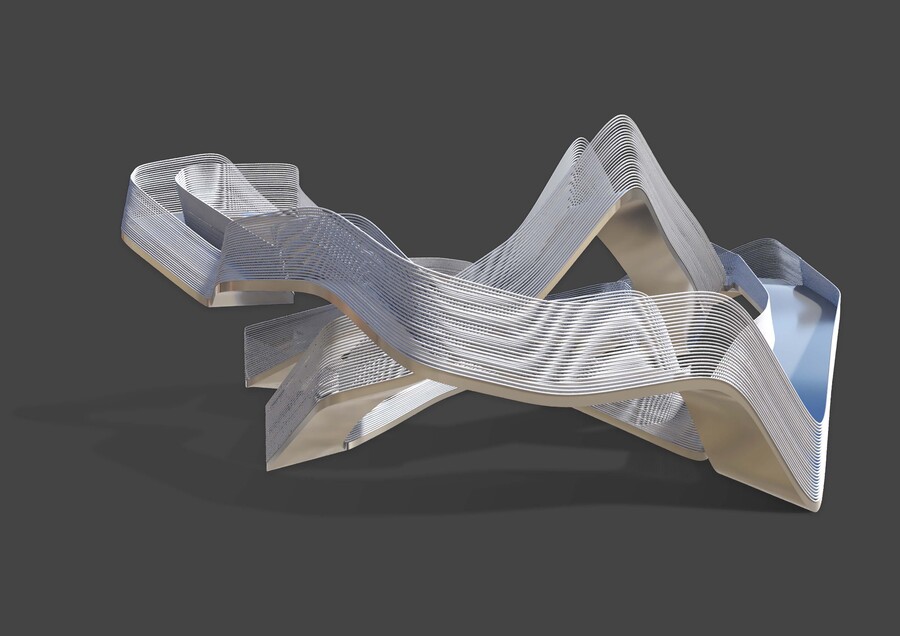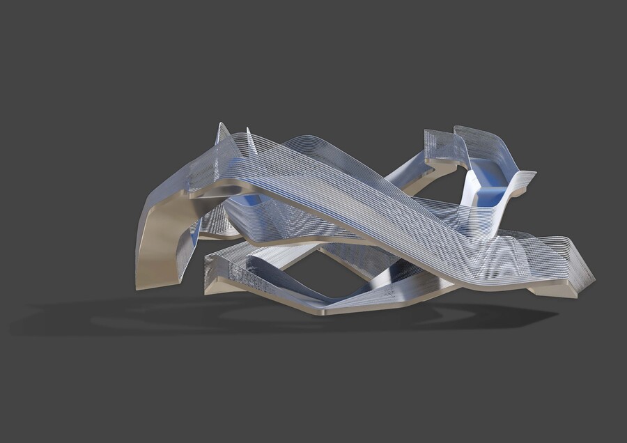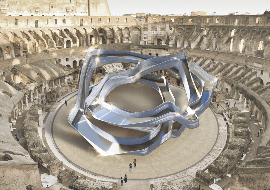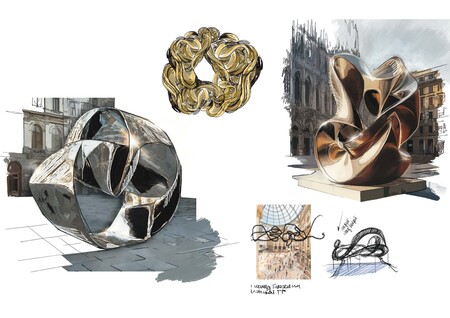 Паблик-арт, разработанный через призму футуристической поэтики Умберто Боччони, призван сплетать воедино прошлое и будущее, преломляя и умножая движение зрителей по нему и прохожих вокруг, а также возвращать динамику замершей истории.