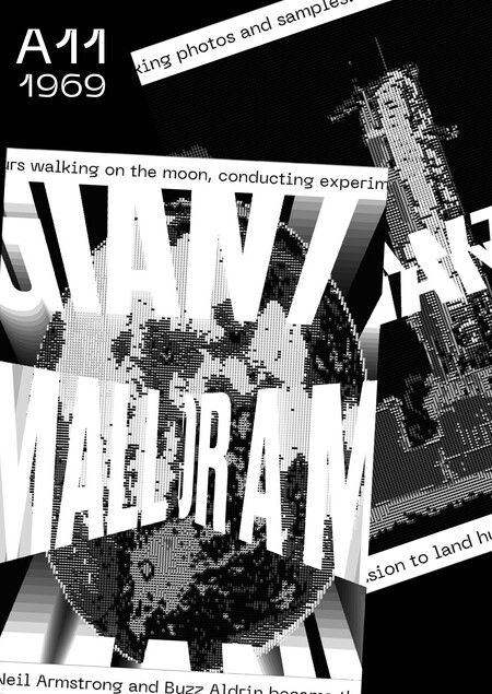 Именно эту цитату произнес американский астронавт Нил Армстронг, как только ступил на Луну. Серия генеративных плакатов, созданных мной в этом модуле, посвящена легендарной миссии Apollo 11 и ее составу.