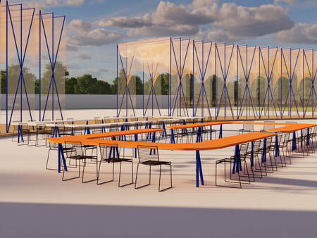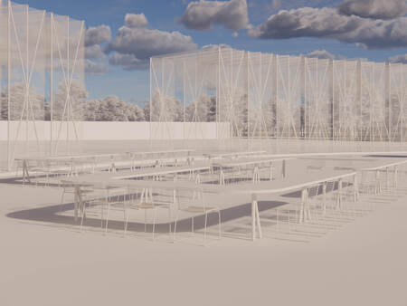 Волнообразные навесы из тонкого пластика напоминают легкую рябь на глади Верхневыксунского пруда в погожий солнечный день.