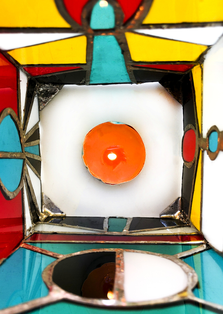 Витражи «Рассветы в цветочных полях» и «Закаты будущего» выполнены в технике Тиффани. Они содержат в себе растительные мотивы, а так же футуристичные геометрические элементы.
