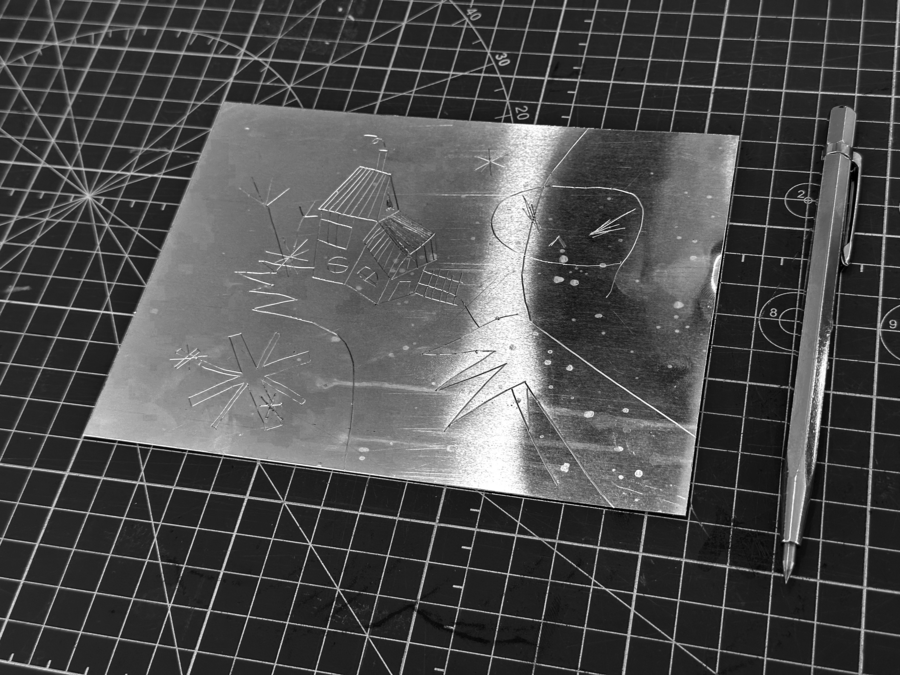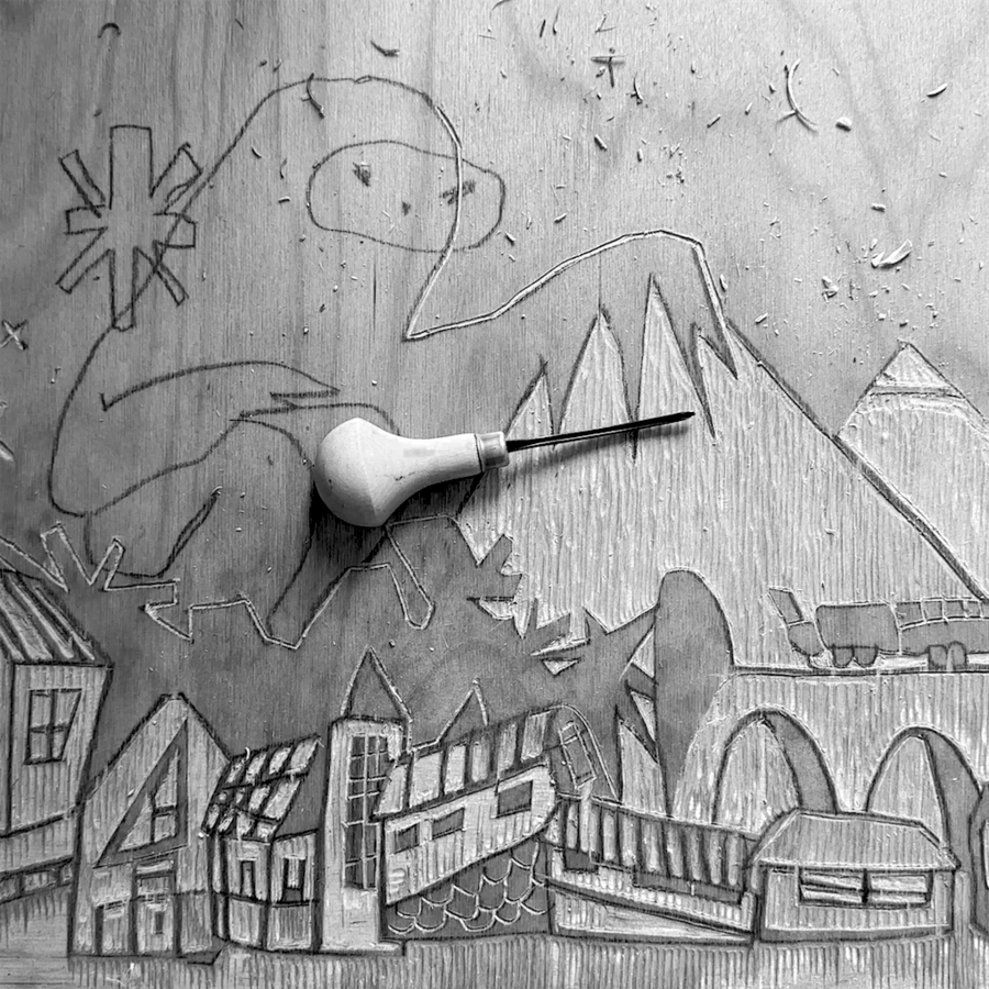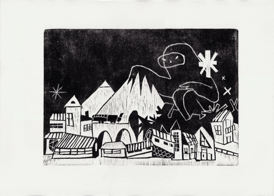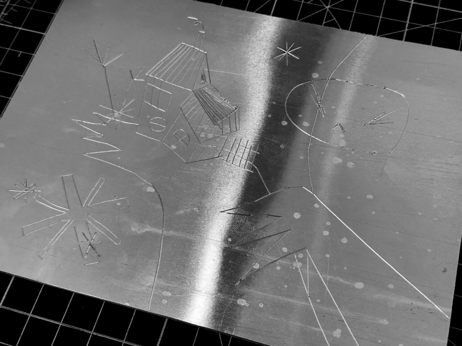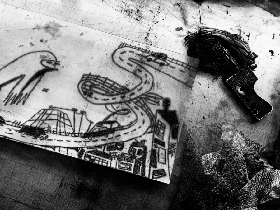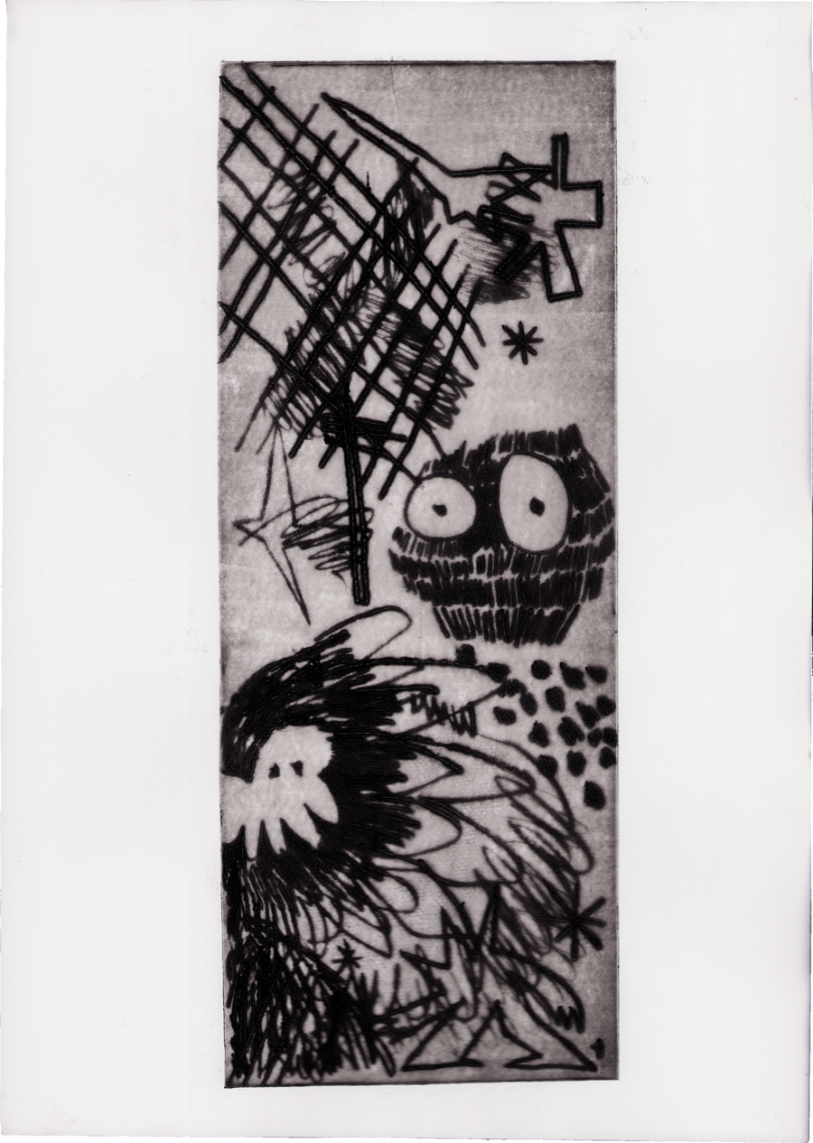 Серия печатной графики в технике сухой иглы и ксилографии.