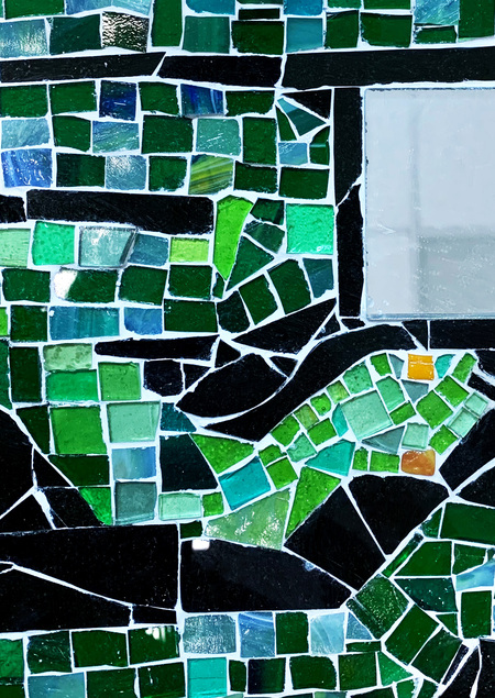 На второй мозаике изображена змея. На этапе эскиза планировалось выполнить ее в розовом цвете, однако после подбора материала было принято решение сделать змею зеленой, в цвет символа будущего 2025 года. Кроме того, в композиции мозаики используется небольшое зеркало.