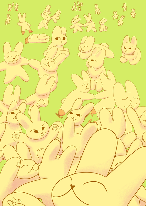 Calendar presents a series of illustrations about rabbits. Every month they rest in a new place: they have fun at the skating rink or in the cable cars, or suffer from unrequited love in a cafe, or have a picnic, or go to the woods to pick mushrooms.