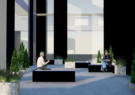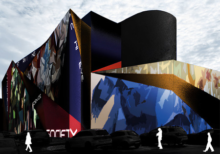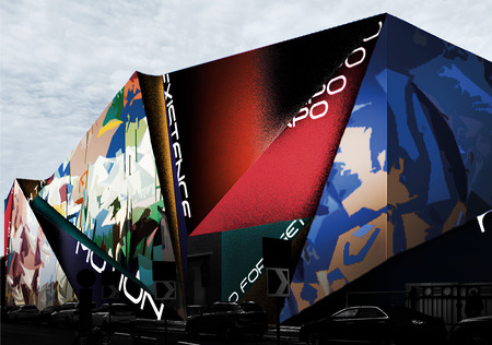 Основой концепции графического фасада является идея передачи городских улиц: множество цветов и оттенков, люди, спешащие в разных направлениях, и изменяющийся поток мыслей: «человечество», «существование», «значимость», «стремление» и другие.