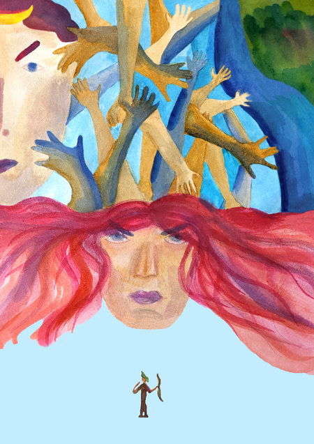 Иллюстрации к лонгриду «Путешествие в метаморфозы» созданы по мотивам поэмы древнеримского поэта Овидия «Метаморфозы». Из множества сюжетов произведения выбраны ключевые, по моему мнению, и через визуальные образы отразила ключевой момент повествования — процесс превращения человека.
