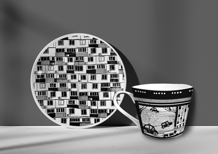 Иллюстрированная серия посуды и текстиля, вдохновленная темами городской жизни и повседневности. В своих работах я постаралась отобразить крупные архитектурные формы Москвы и небольшие повседневные вещи, найти параллели и пересечения между ними. Я использовала черно-белую палитру и ограниченный набор графических приемов, что позволило мне отразить ритмы городской жизни.