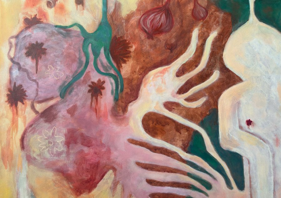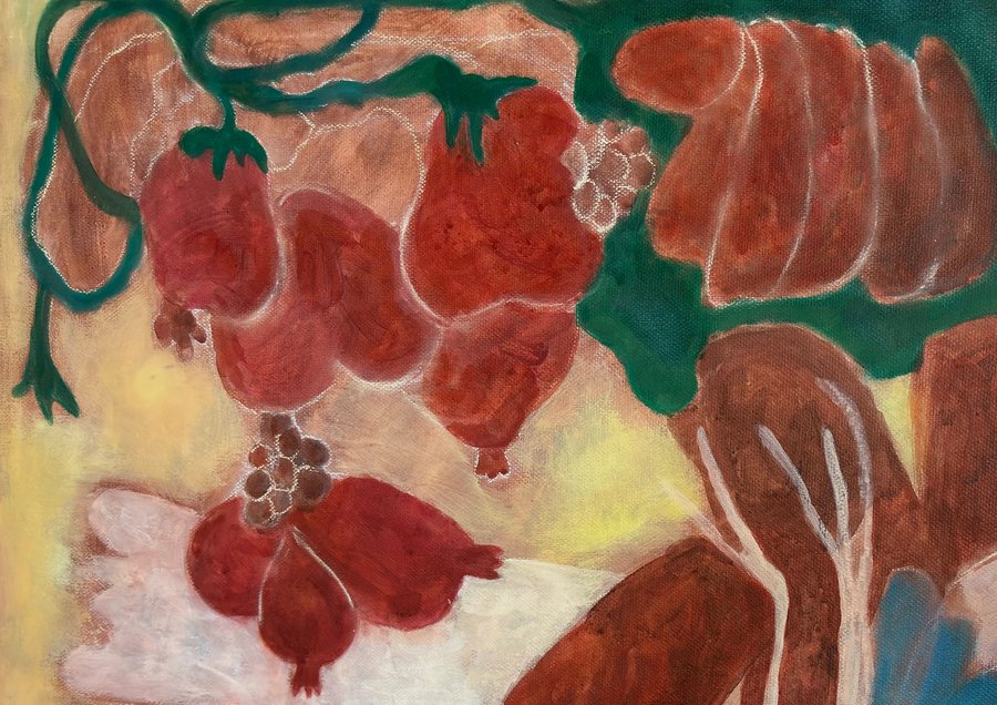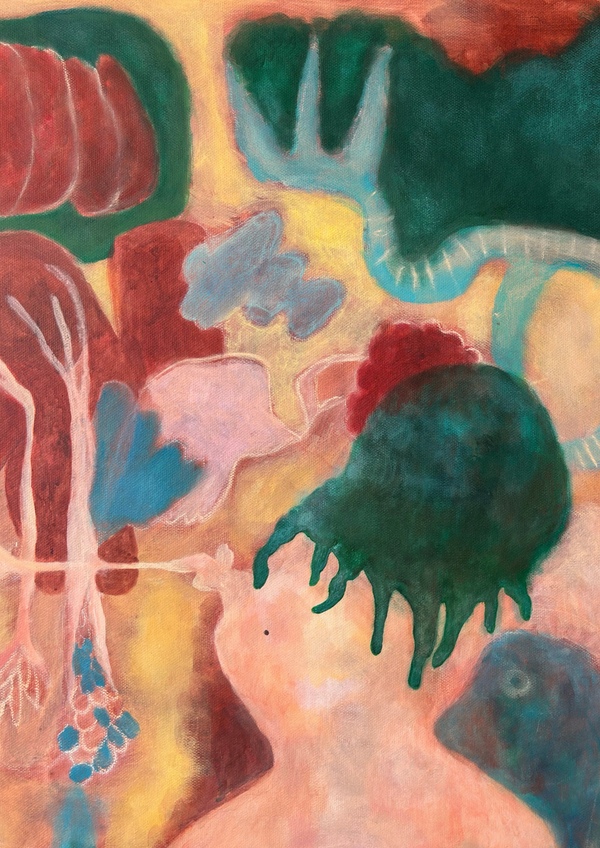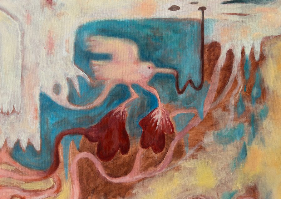 Окружающий мир становится для нас главным источником вдохновения. Созерцая его, наши мысли разрастаются подобно дереву, крепко впиваясь корнями в мозг. Это дерево рождает плоды, которые превращаются в птицу, а кости перерастают в рога цветущей коровы-кормилицы, вырастающей из почвы и впитывающей голубые реки. Цветы становятся крыльями бабочки, которую обвивают растительные побеги, в то время как тяжёлые плоды превращаются в оковы птичьих ног. Такое слияние формирует новые образы, которые претерпевают различные метаморфозы и усложнения, открывая перед нами безграничные возможности для воображения.