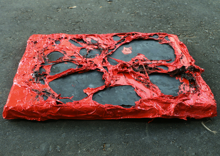 Для того чтобы изобразить этот этап, на отлитой из гипса форме была построена хаотичная композиция из разнообразных материалов. Главное — это обломки и остатки катастрофы, ничего живого не образует рельеф, только то что останется после неразумного, грязного потребления, убивающего Землю ежедневно.