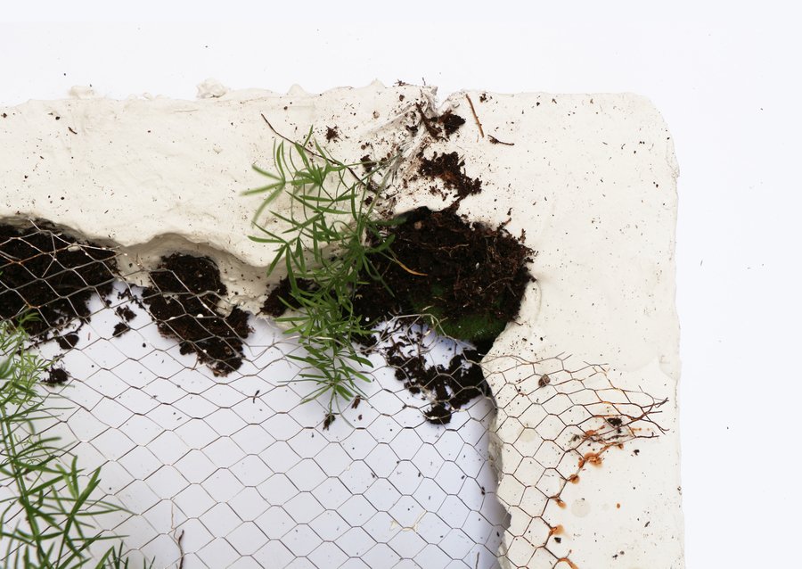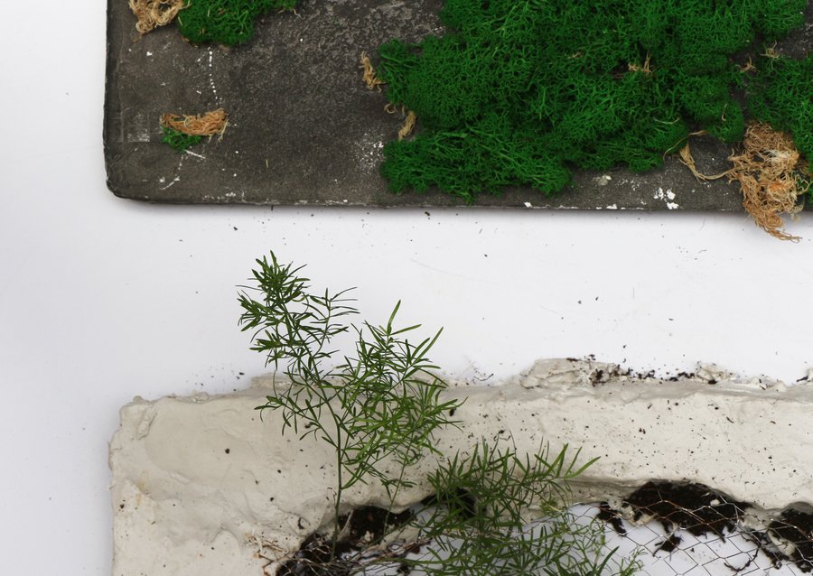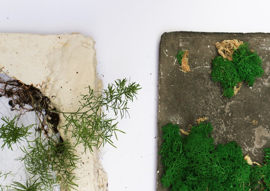 Природа борется до последнего и даже на необработанной почве может что-то расти. Часто можно увидеть как ростки пробираются сквозь асфальт. Использованный в проекте мох один из самых жизнеспособных растений, олицетворяющий экологию способную развиваться даже в трудных условиях.