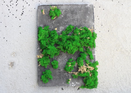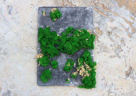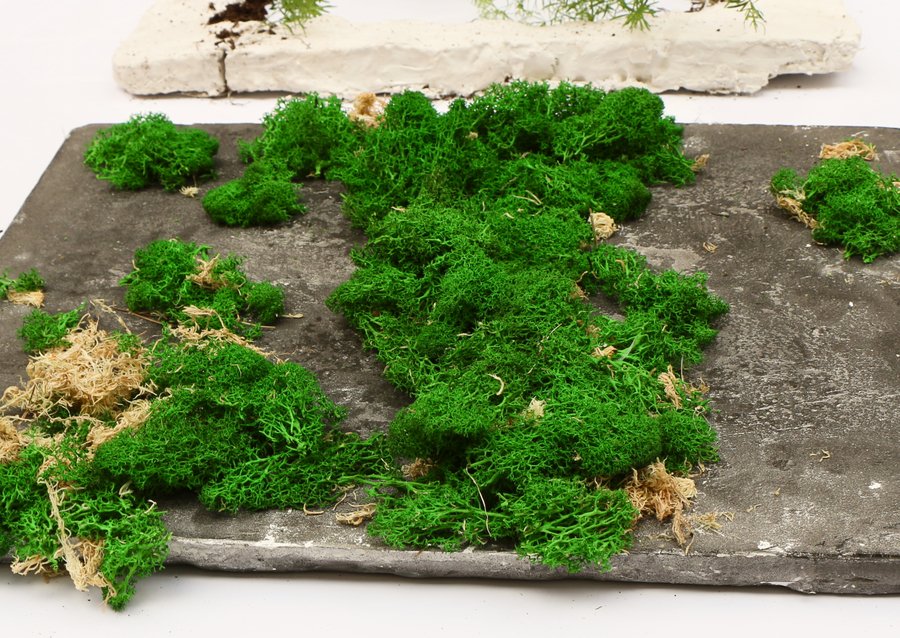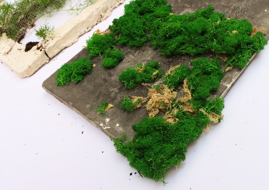 420×594 мм. Основа из гипса, черная эмаль для окраски, разные виды мха.