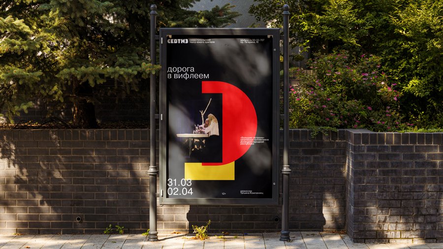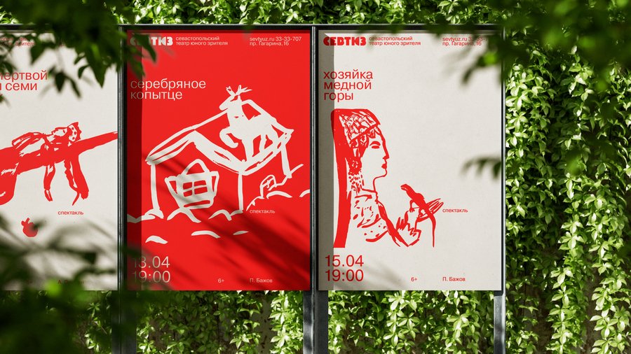 Вдохновением проекта послужила эстетика С. Чехонина и само советское прошлое с детскими и добрыми настроениями. Решением служит яркая ручная графика, отражающая дух театра и города, а также геометрические формы, отсылающие к простоте и открытости. Севтюз помнит своё прошлое и открыт к настоящему.