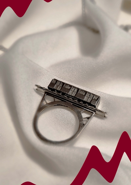 «Элегантная подземка» — комплект украшений, в образе которого соединились промышленный дизайн и мода. Изделия выполнены в виде рельс, по которым мчится поезд метро, что подчеркивает стиль и динамичность городской жизни. Минималистичный дизайн из простых форм не только подойдет под большинство современных уличных образов, но также сможет дополнить вечернее выходное платье.