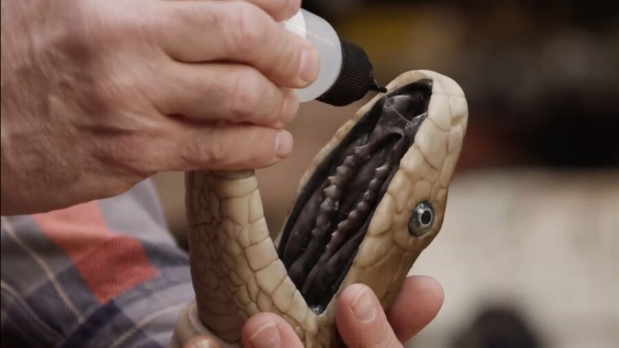 Так как змея в конечном счете лишалась своих клыков, кукла имела съемные накладки, закрепленные на подобие жидкого клея, что позволяло создать эффект слизи.