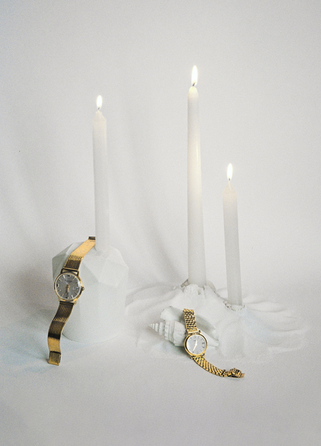 Я снимаю ювелирные украшения своей мамы, бабушки и прабабушки, которые передаются по наследству, таким образом переносят память о женщинах нашей семьи в вечность. Украшения находятся среди знакомых нам объектов, таких как посуда, цветы, фрукты и овощи. Многие из них были живыми, но «застыли», как мраморные скульптуры, также как застывает память о людях в предметах. В поддержание этой концепции я использую в кадре такие предметы как песок, свечи и на первом кадре часы. Все они — символ уходящего времени. В качестве инструмента для съемки я выбрала плёнку, это придаёт кадрам определенный «винтажный» цвет и дух прошлого.