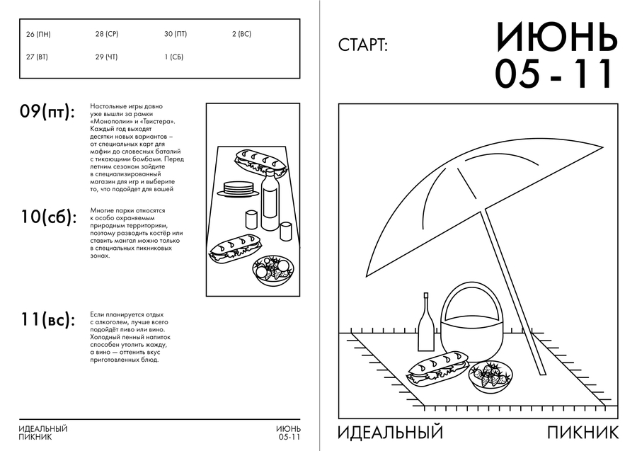«Календарь начнется в понедельник» — проект календаря, где каждый месяц посвящен новому челленджу или хобби, к которому человек может приобщиться за семь дней.