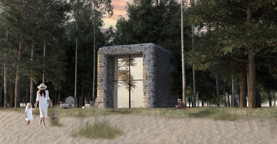 Оформление территории поселка Легково включает в себя разработку гостиничного комплекса и зону набережной с саунд-модулями, в которых проигрываются эмоциональные отрывки из интервью местных жителей, раскрывающие пережитые эмоции в тот период времени.
