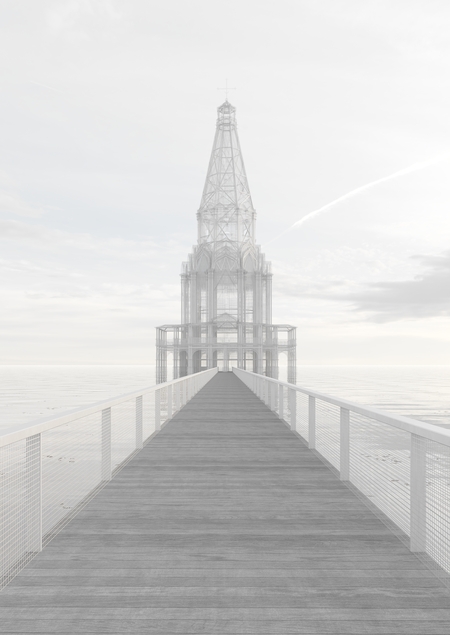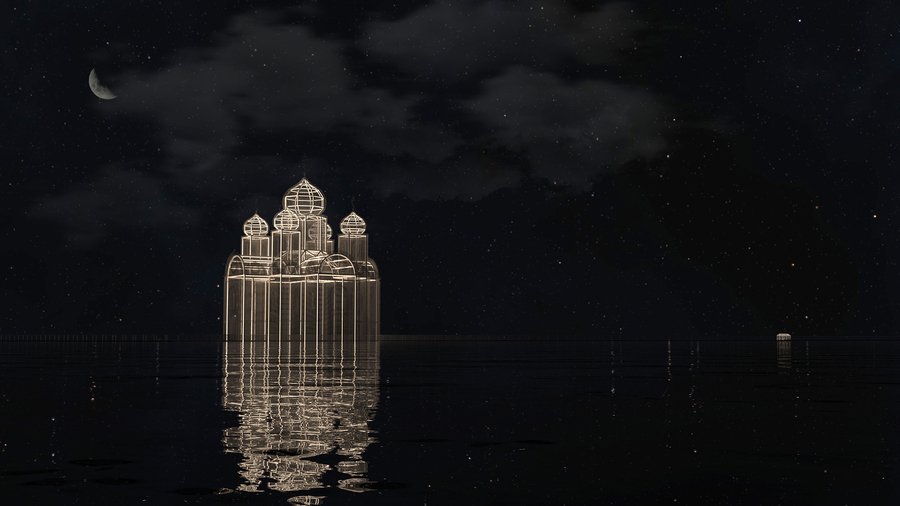 Для инсталляций на воде был выбран материал стальной сетки, чтобы получить эффект города-иллюзии.