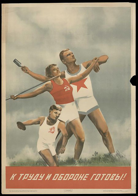 На этом фоне политика массового спорта обретала особую выразительность. Внедрение комплекса ГТО превратило физкультуру в обязательный жизненный этап: значок ГТО на груди школьника или рабочего был не просто знаком отличия, а символом причастности к общему делу. Плакаты «Готов к труду и обороне!» с четкими линиями тел и уверенными позами героев создавали визуальный ритм эпохи, а таблицы нормативов — 1931, 1939, 1955 годов — фиксировали её практический, дисциплинирующий пульс. Из этих таблиц и плакатов складывался образ идеального гражданина: сначала «тело рабочего» 1920-х — крепкое, выносливое, трудовое; затем «герой труда и спорта» 1930–50-х — собранный, организованный; наконец, «советский чемпион» 1960-х, олицетворяющий престиж страны на международной арене.