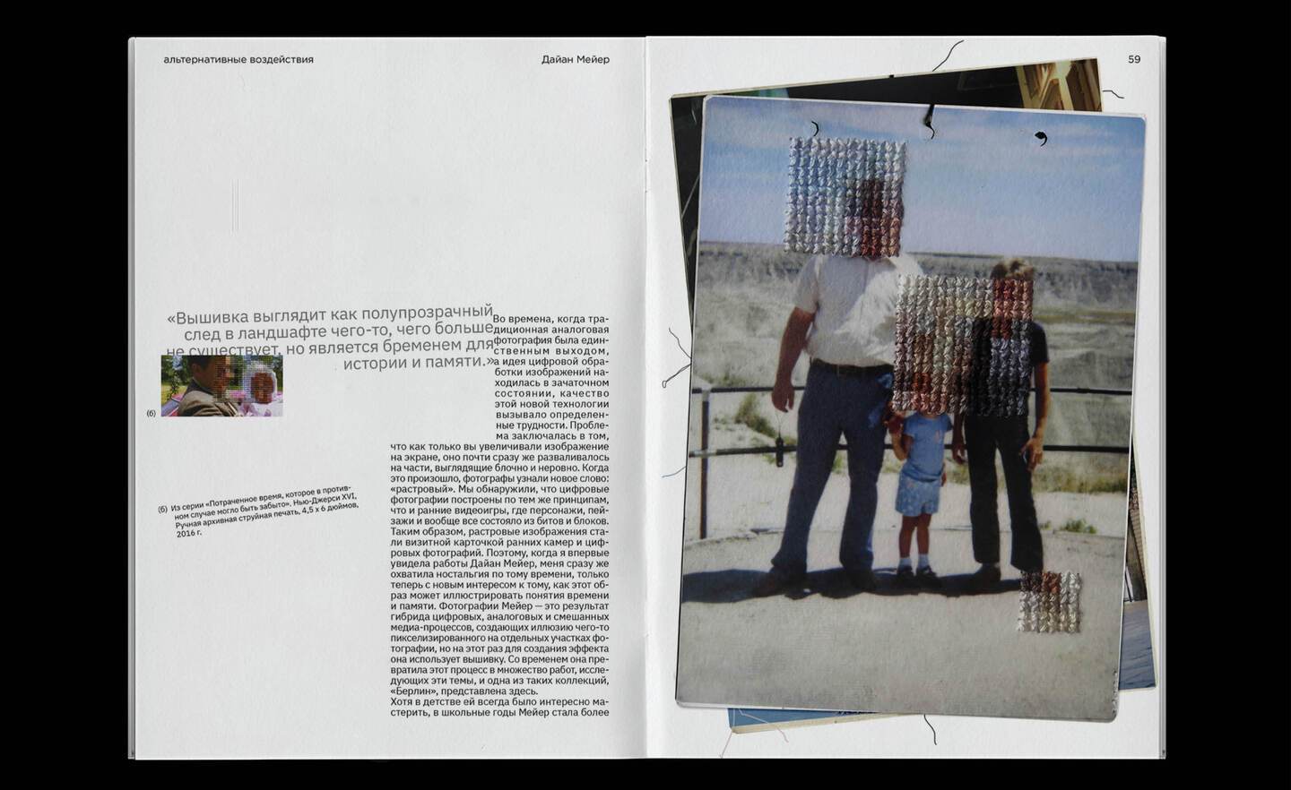 «Фотография. Хрупкие материи» — это книга-исследование, посвященная переосмыслению привычного значения слова «фотография». Издание рассказывает о том, как различные нетипичные техники могут изменить взгляд на искусство фотографии. Под «нетипичными техниками» подразумеваются различного рода воздействия на фотографию, а именно коллажирование, вышивка, механические воздействия и т. д.