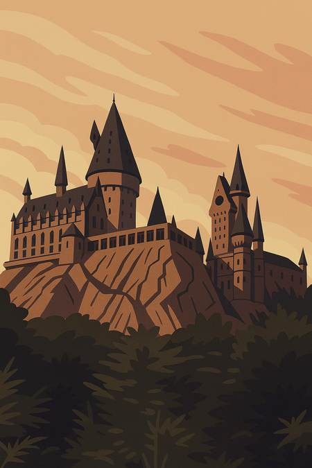 Визуальный облик Хогвартса создан на основе нескольких реальных локаций, среди которых замок Алник, Даремский и Глостерский соборы, а также другие элементы английской средневековой архитектуры. Такая комбинация позволяет включить замок в широкий культурный контекст и придать ему историческую достоверность. Однако именно готическая стилистика объединяет все эти разнородные архитектурные источники в цельный образ: стремительная вертикаль башен, ритм арок и драматическая игра света превращают Хогвартс в архитектурную метафору таинственного и многослойного мира магии.