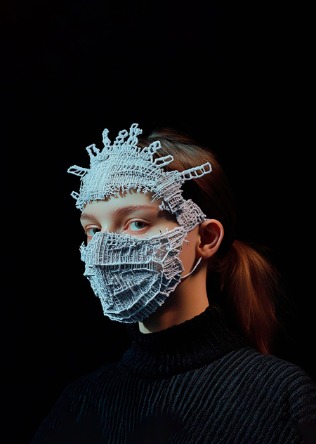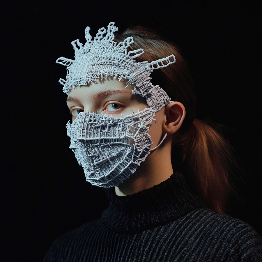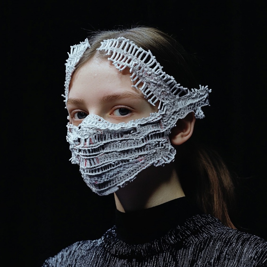 Проект, который я взяла за основу ребрендинга, был посвящен экспериментальному костюму. В проекте я создала маску-респиратор, которая служила атрибутом костюма персонажа перформанса.