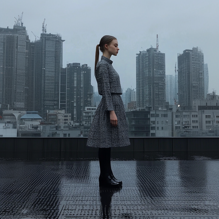 Midjourney / промт: photo of girl in full lenth woven clothes in on background tokyo --sref https://s.mj.run/Cg4enkPraxw --v 6.1