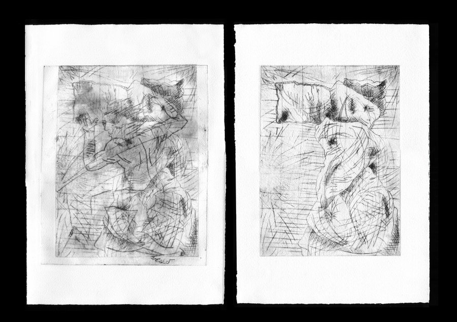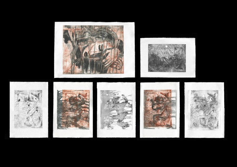 «(in)somnia» — проект, объединяющий печатные графические работы и инсталляцию как продолжение темы. Название сочетает два состояния: бессонницу и существование в бессознательном, во сне.