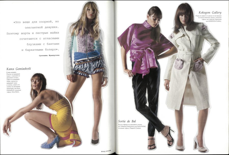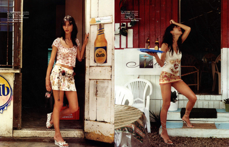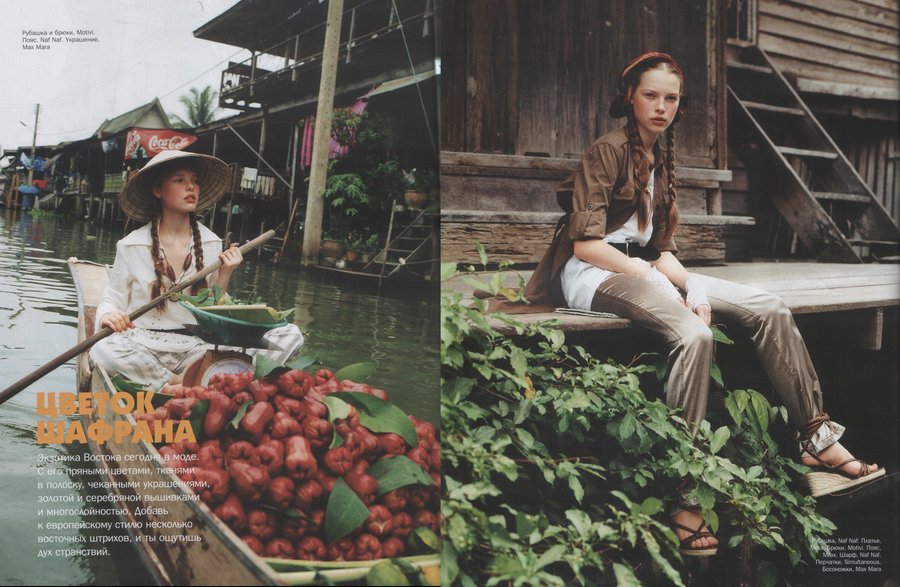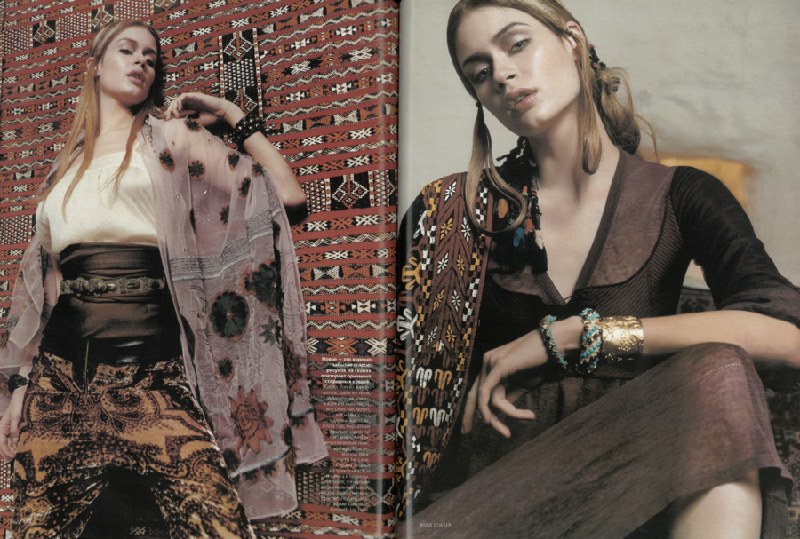 Владислав: Были модели, которые спасали любую съемку. Может, они не суперзвезды, но абсолютно универсальны. Одна из таких — Лариса Иванова. Она спасала любую ситуацию своим нестандартным образом. Помню съемку на пленку: Египет, белый пляж, вокруг только местные женщины в парандже, жара.
