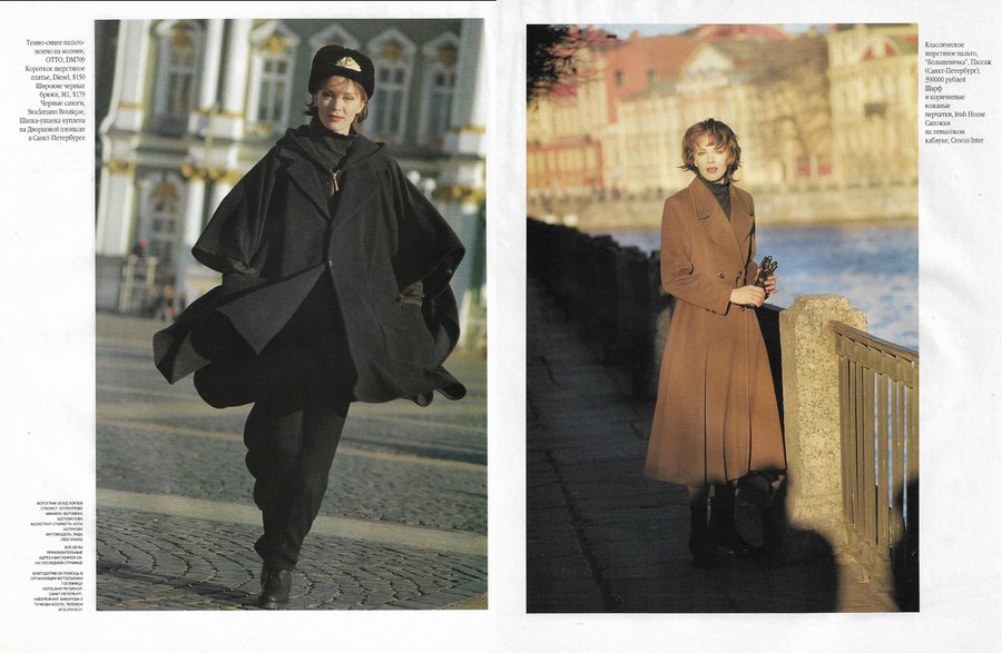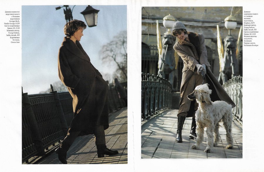 «Теплые пальто для холодной зимы» Cosmopolitan Russia, январь–февраль 1995 фото: Влад Локтев стиль: Эллен Рюве модель: Лада (Red Stars) макияж: Вероника Шеповалова