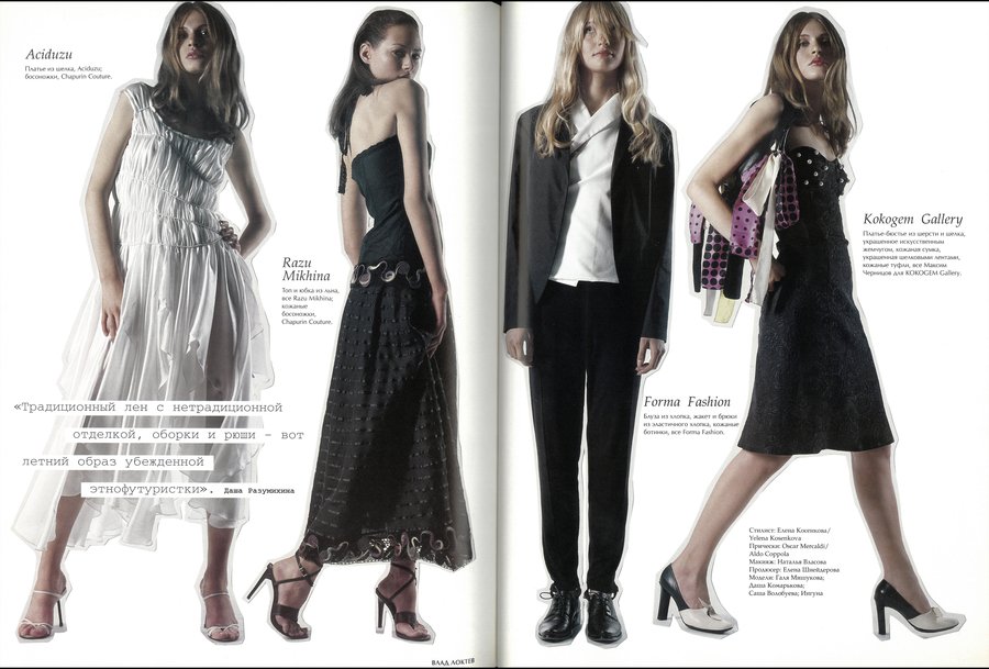 «По дороге в город» Cosmopolitan Russia, июль 2003 фото: Влад Локтев стиль: Ирина Черняк модели: Кристина Руденькая (Fashion), Наталья Семенюк (Point) макияж: Вероника Шеповалова