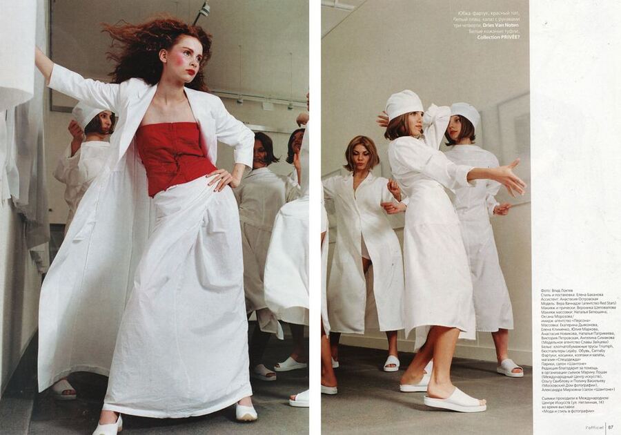 Владислав: Чаще всего мы работали для Юлии Яниной. Это уже 2004 год, когда мы перешли на цифровые камеры. Очень интересные съемки были с группой модельеров-художников Seredin & Vasiliev, для них мы снимали в доме Рябушинского [Прим. АРМ: Владимир Середин и Сергей Васильев — дуэт дизайнеров, основавших бренд Seredin & Vasiliev в конце 1990-х. После второго показа марка получила статус кутюрной от Парижского синдиката высокой моды]. Они сами договаривались о локациях, сами очень скрупулезно и филигранно стилизовали съемки.