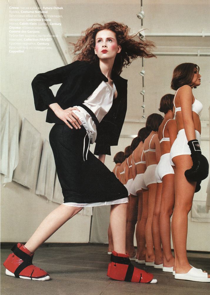 «Мода — бой без правил» L’Officiel 1999 фото: Влад Локтев стиль и постановка: Елена Баканова