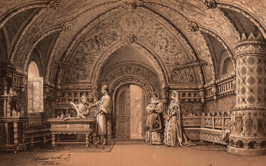 Если в балете художники создавали вымышленные миры, не существующие в реальности, то в оперных постановках русских композиторов 1860-х годов применялся метод воспроизведения прошлых эпох на основе археологических данных. С особым вниманием к деталям и реализму в постановках оказывались реальные предметы и вещи из исторического прошлого, становившимися основой декораций. Этот подход позволял зрителям увидеть, как жили и что использовали люди в прошлом, представляя минувшую действительность на сцене и отвечая на потребности времени в научном познании мира и исторического прошлого.