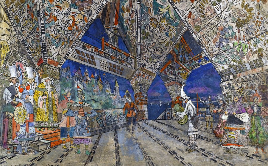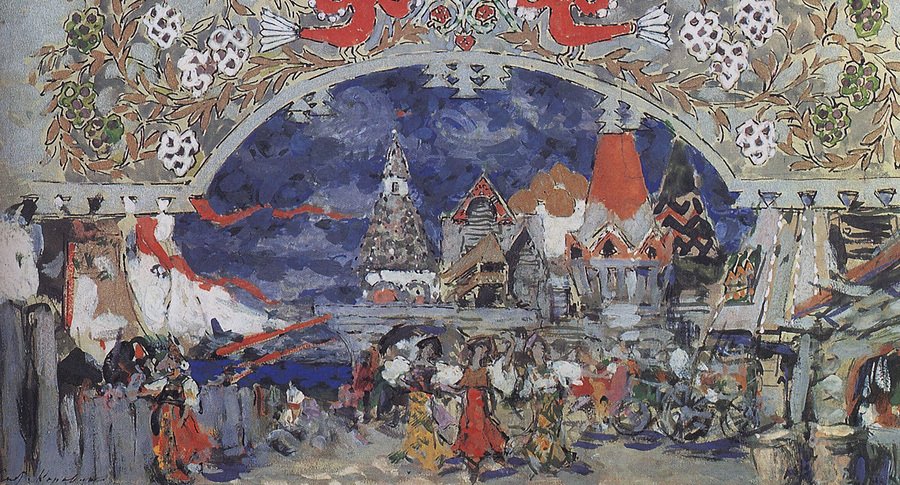 Ретроспективная тематическая панорама, представленная в русском театре конца XIX — начала XX века через декорационный неоромантизм, одним из пластов которого и была сказочная, в тоже время историческая Русь, включала изображения конкретных мест действия различных эпох и стилей. Эти изображения хоть и были разработаны в романтическом стиле и археологическом натурализме, все же только в период декорационного неоромантизма они получили самоценное воплощение в произведениях сценической искусства.
