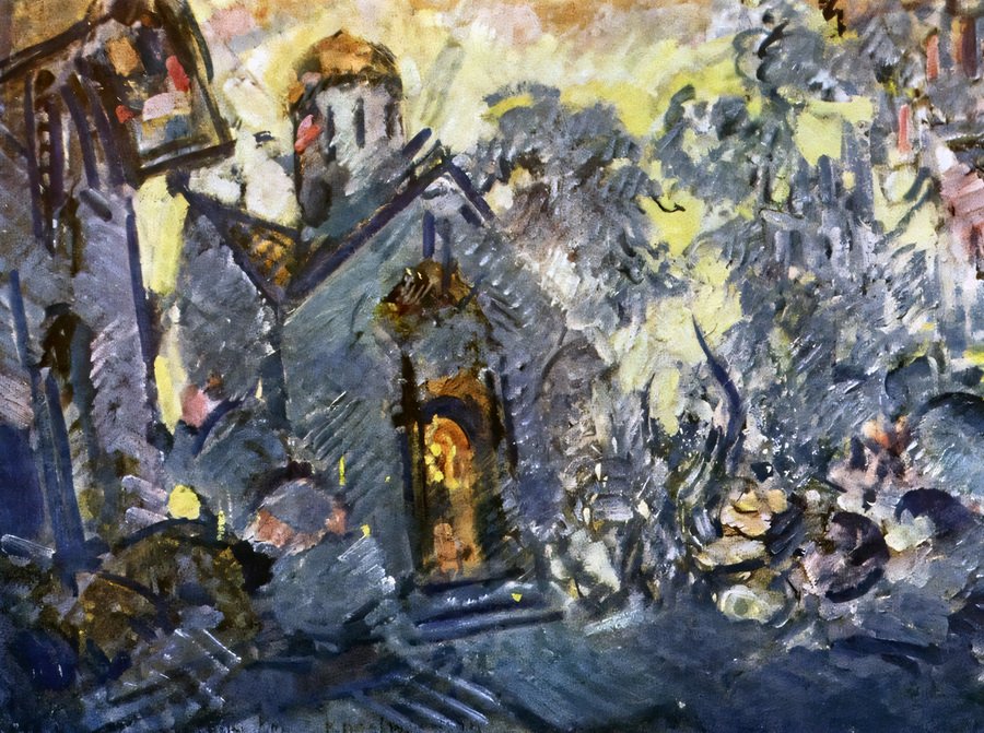 В станковых полотнах игра цвета и формы передавали состояния и звучания природы, ощущение динамики и изменчивости картин. При помощи цвета художник достигал волнующей эмоциональной наполненности, и по мере развития своего творчества, театральная живопись становилась все более декоративной и звучной.
