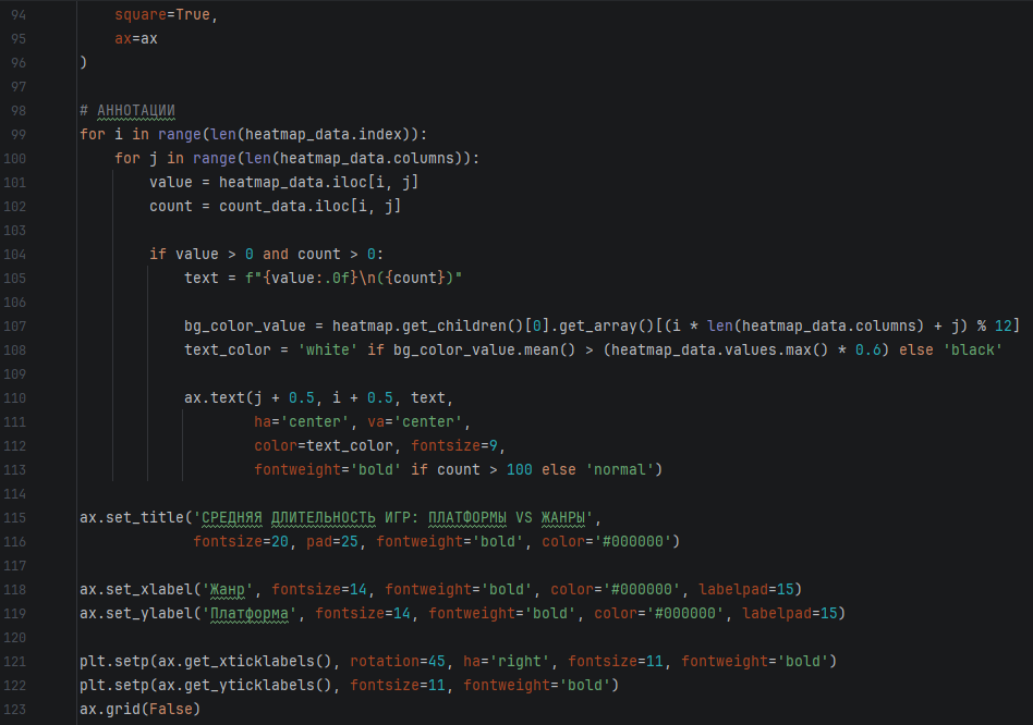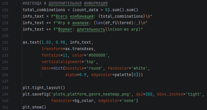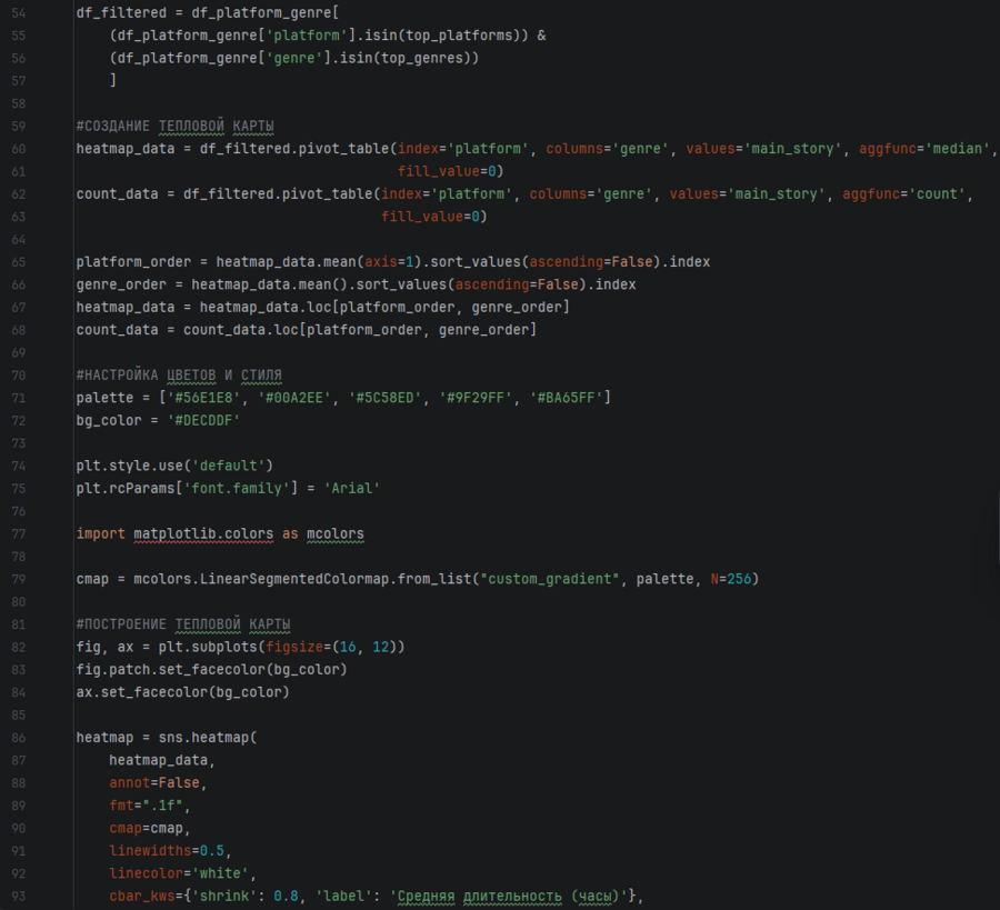 Тепловая карта показывает, что самые длинные игры выходили на PS3 в жанре RPG. Это совпадает с расцветом сюжетно-насыщенных игр, таких как Mass Effect, The Elder Scrolls, Dragon Age. Это подчеркивает, что поколение консолей 2000-х стало пиком для игр с глубоким проработанным сюжетом, тогда как современные платформы (PS5, Xbox Series X/S) предлагают более сбалансированный, но менее экстремальный по длительности контент.