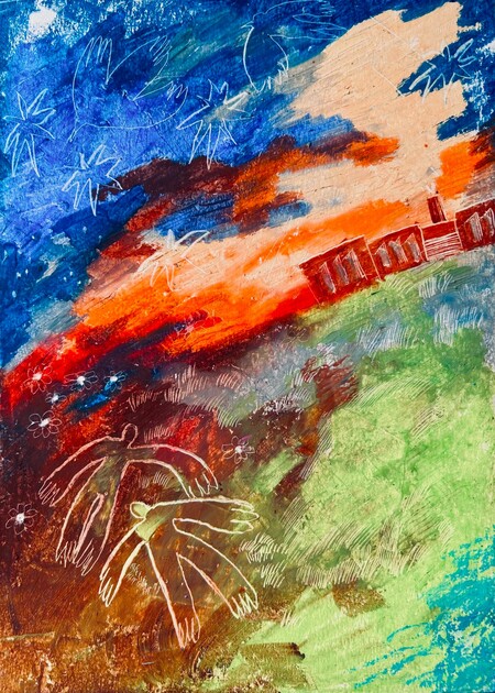Paper, wax chalk, scratching the stitch. General format of the 630×594 mm series