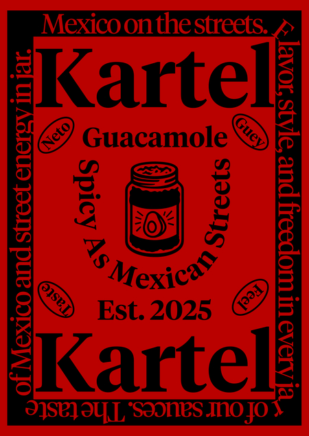 KARTEL — Бренд гуакамоле и соусов прямиком из Мексики, айдентика которого строится на культуре и эстетике мексиканских банд и стиля улиц. Лучшее гуакамоле только из Мексики, мы сохранили классическую рецептуру и даем вам возможность ее ощутить
