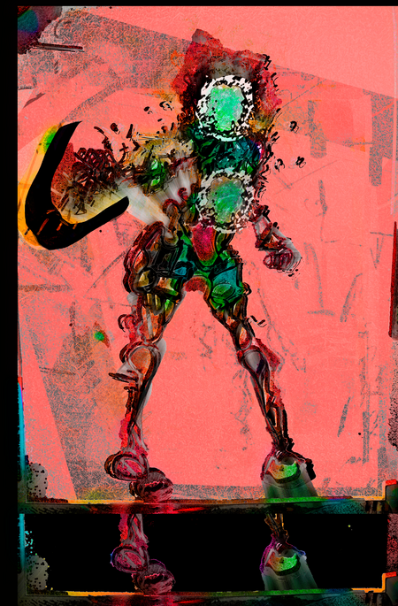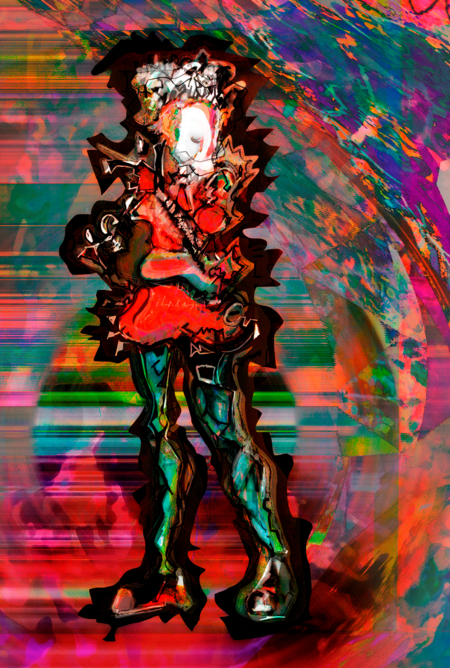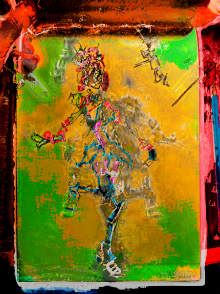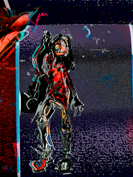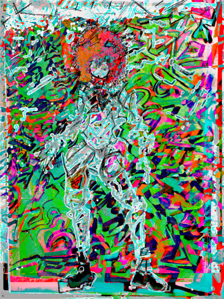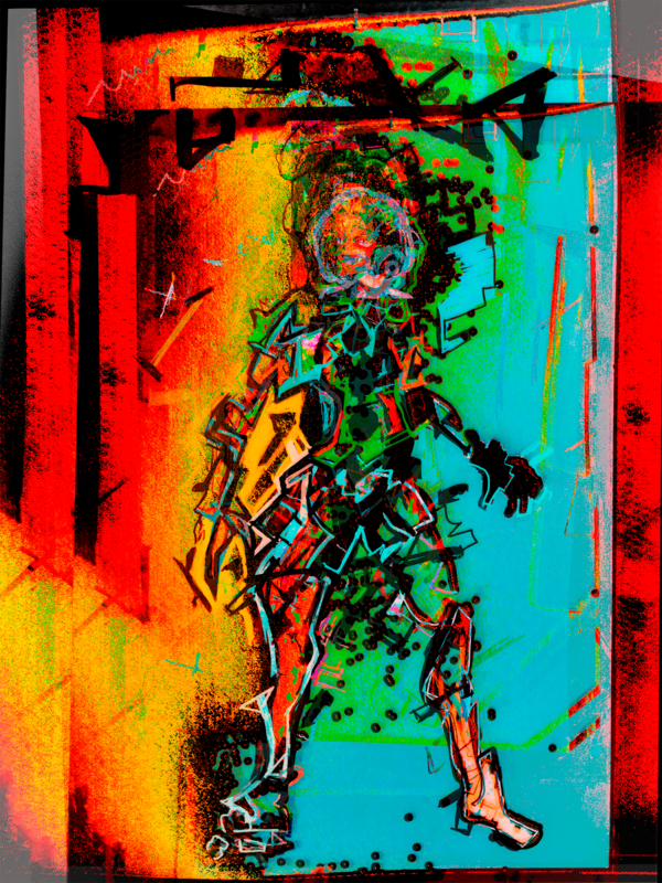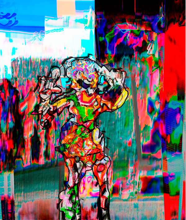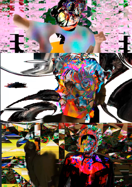 — Полной невозможности членить составность таких работ-предельных-гибридов из каши-солянки медиумов (цифровая живопись, инструментарий граф. редакторов, случайные глитчи, ИИ, традиционные средства живописи и фотографии).