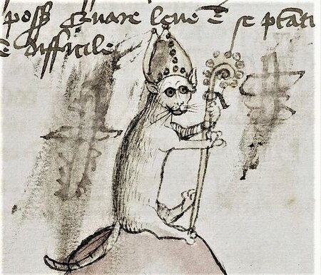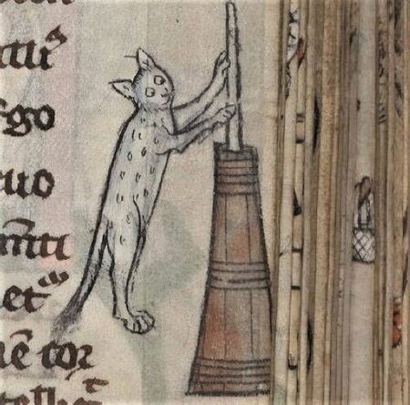 В целом изображение антропоморфных существ было частой практикой в тот период. Чаще всего средневековые художники рисовали котов таким образом в контексте литературы, в том числе мифологической. Отсюда также следует упрощённость и искажённость изображений.