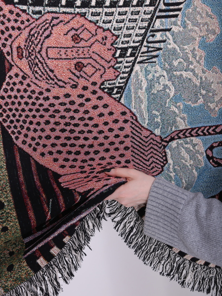 Техника и материалы: жаккардовый гобелен, хлопковая нить Размер: 215×155 см Тираж: 50 шт. Цена: 50 000 руб.