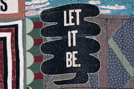 Ковёр Let It Be, 2025 Техника и материалы: жаккардовый гобелен, хлопковая нить Размер: 215×155 см Тираж: 33 шт. Цена: 100 000 руб.