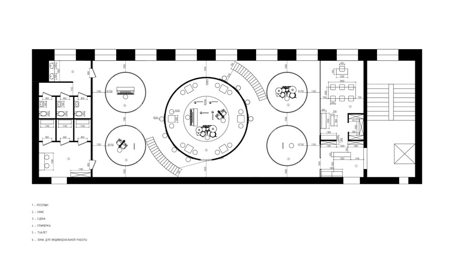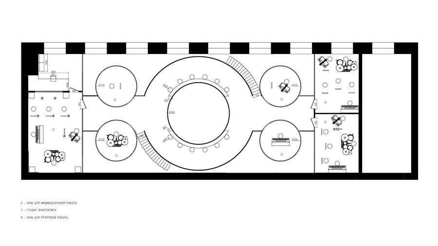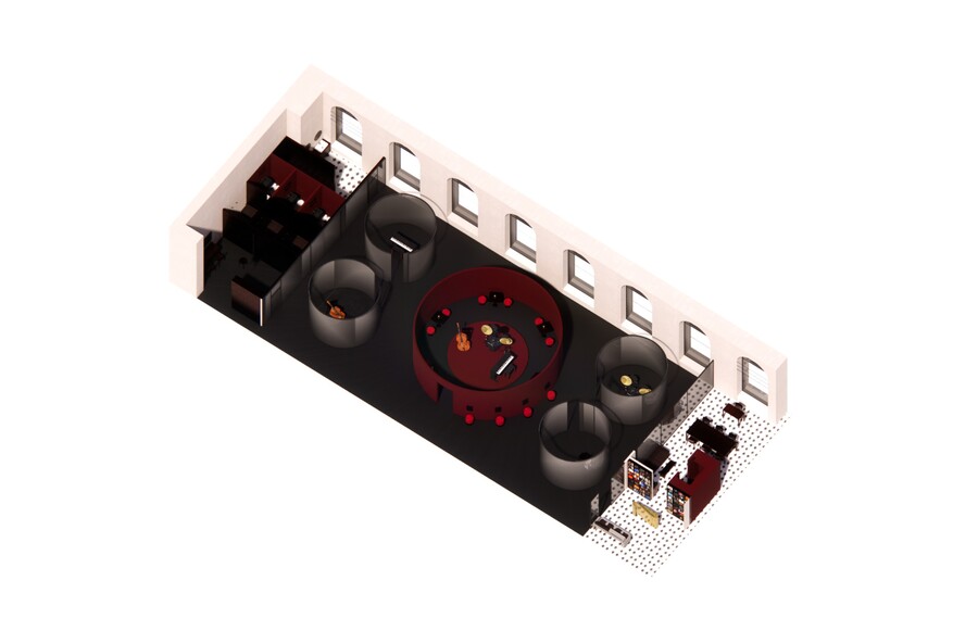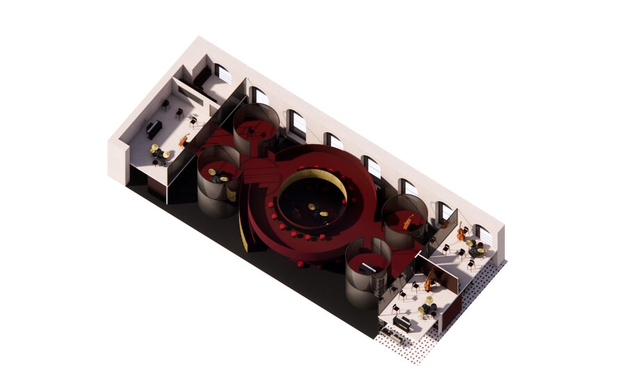 Данное пространство направлено на развитие джаза, так как он стал снова набирать свою популярность. Посетителю предлагается стать частью мира закулисья. Прочувствовать какого это быть артистом, научится играть джаз, а после можно и представить свою программу перед зрителями. Для этого в коворкинге есть все необходимое — комнаты для индивидуальной практики или для групповой, студия звукозаписи, гримерка, зона помывки инструментов, сцена. Также здесь можно и просто насладиться атмосферой, посмотреть галерею или видео про историю джаза, выпить коктейль из бара и насладиться вечерними концертами. При желании, на выходе, можно приобрести пластину понравившийся композиции.
