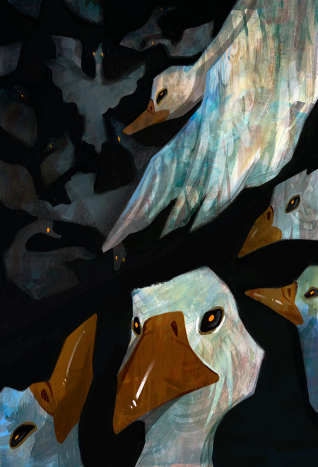 На фото, представленных в разделе весенних месяцев, зафиксированы: - Чикчарни и Сквадер — таинственные сова-гигант с детенышами и помесь глухаря с зайцем - Слуги Бабы Яги — Гуси-Лебеди - Птица-стихия, наблюдаемая лишь в грозу, также известная, как Громовая Птица